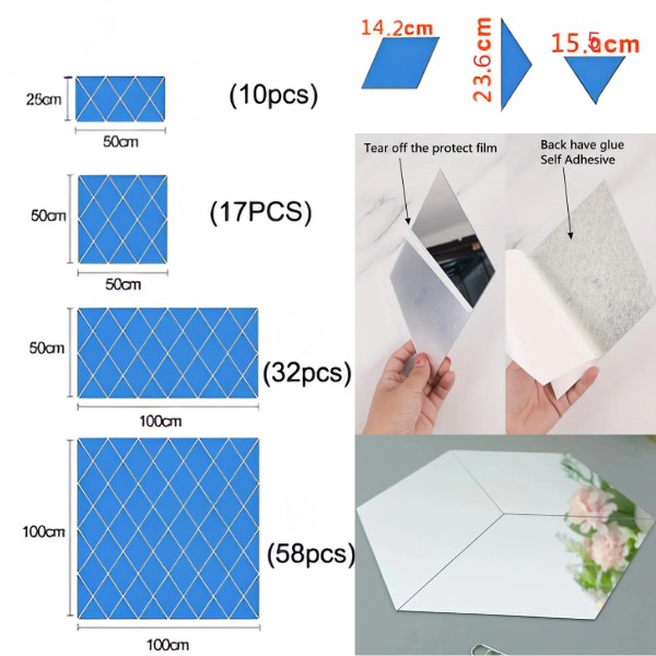 👉 32 de bucăți pentru a aranja un dreptunghi de 50x100cm sau orice aspect personalizat.