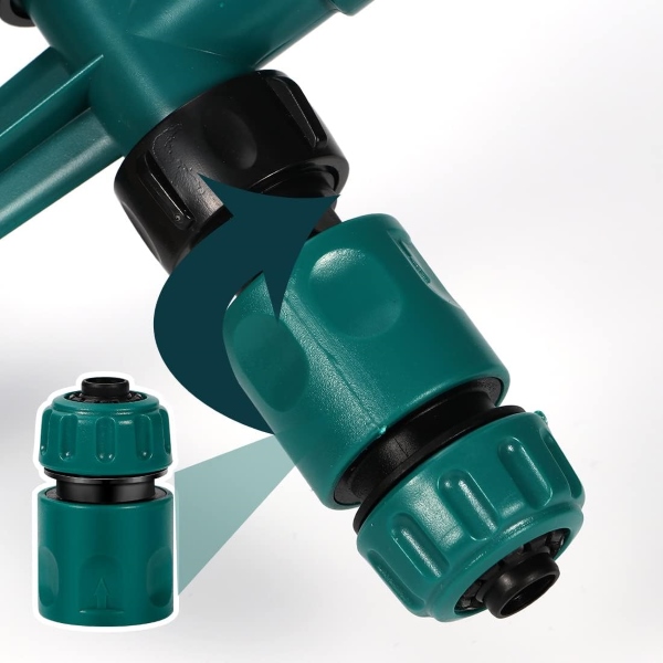 Cu duzele duble de furtun ROTOSPRITZ, puteți conecta fără efort mai multe aspersoare pentru a acoperi suprafețe mai mari. Pur și simplu atașați două sau mai multe unități ROTOSPRITZ împreună pentru irigare bilaterală, asigurându-vă că întreaga dvs. grădină primește cantitatea perfectă de apă. Această conectivitate fără întreruperi îl face ideal pentru gazoane și straturi de grădină întinse.