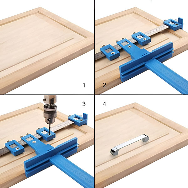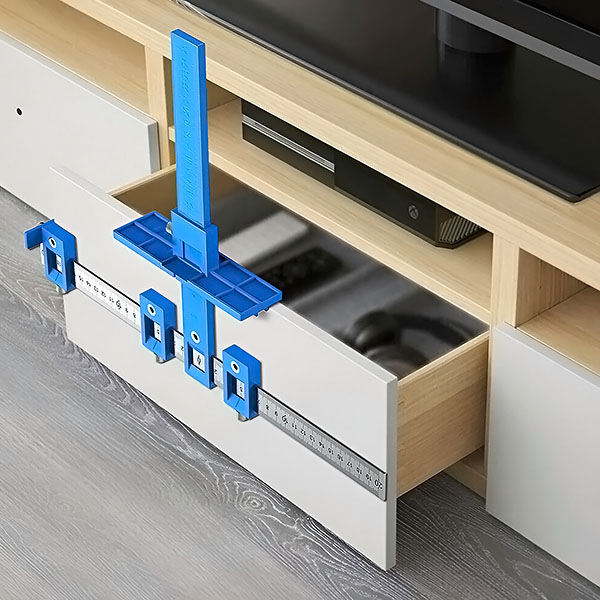 După găurire, atașați accesoriile (de exemplu, mânerele sertarelor) pentru a finaliza instalarea cu găuri perfect aliniate!