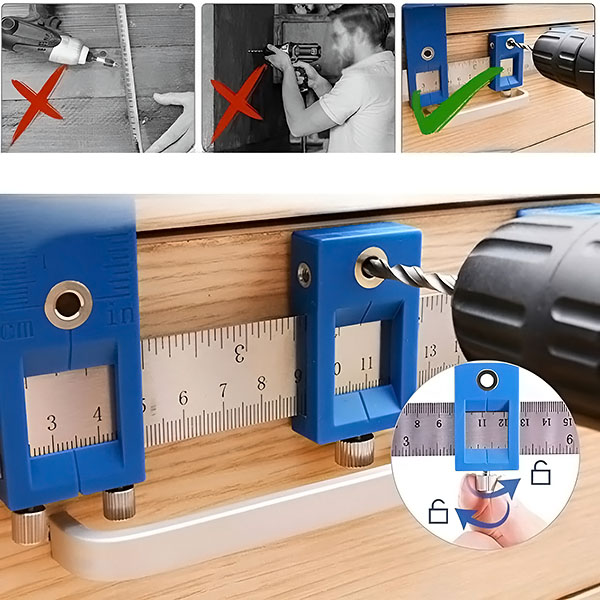 🛠️ Găurire perfectă, de fiecare dată! Faceți bricolajul mai ușor cu șablonul nostru de centrare reglabil. Faceți găuri precise în mobila din lemn și nu numai, cu o aliniere rapidă și precisă pentru orice proiect.