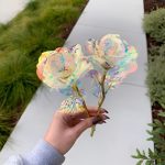 Fiecare trandafir este realizat cu un strat irizat, holografic, care strălucește frumos în lumină, creând o strălucire asemănătoare galaxiei care este pur și simplu hipnotizantă.