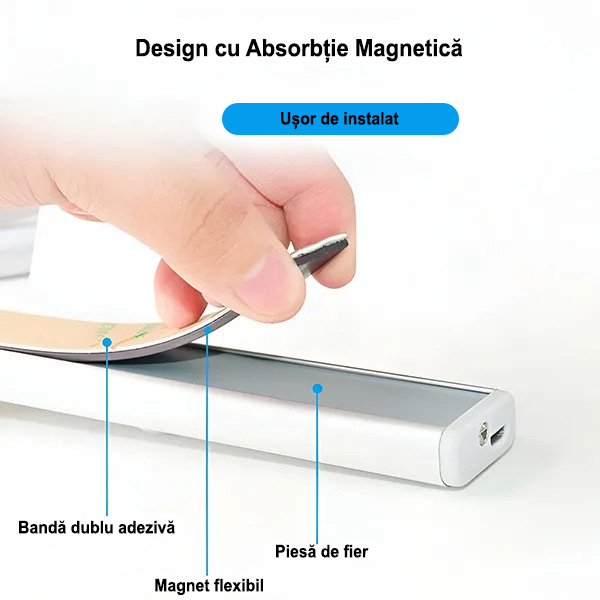 Lipiți lampa lângă ușa băii sau în interior. Aceasta se activează când vă apropiați, oferind suficientă lumină pentru vizitele nocturne, fără lumina puternică a lămpilor de tavan.