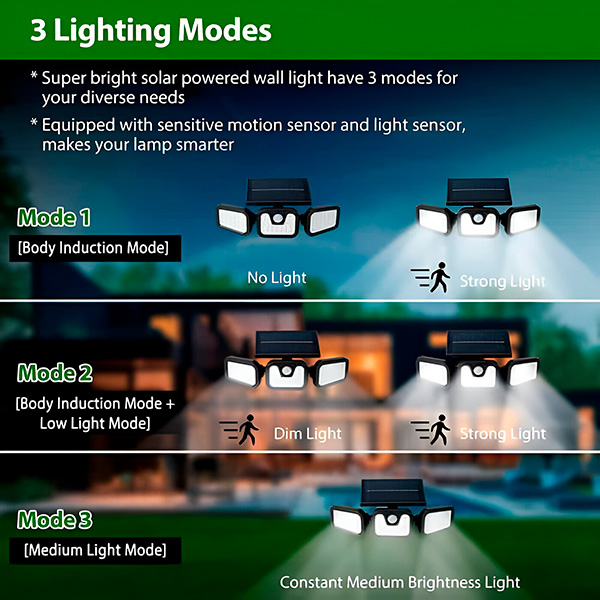 Lampă solară triplă cu senzor de mișcare | SENSBEAM