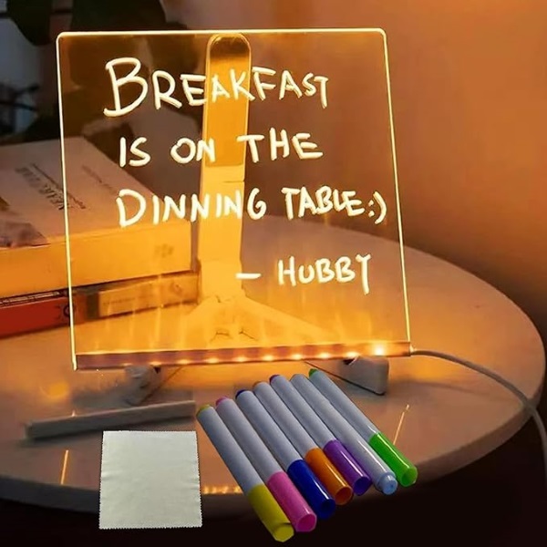 Tablă acrilică cu LED-uri cu 7 markere | LUMOBOARD