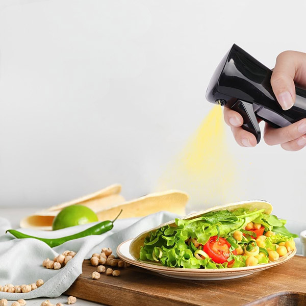 Echipat cu un mecanism inovator de dozare, FLAVORMIST permite controlul precis al cantității de lichid distribuit. Această caracteristică este deosebit de benefică în bucătărie, permițându-vă să gestionați eficient utilizarea uleiului, promovând o gătire mai sănătoasă prin reducerea grăsimilor și caloriilor inutile.