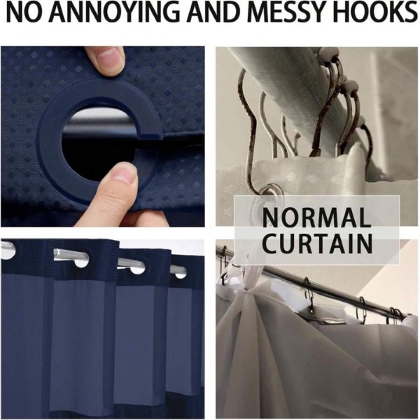 Perdeaua de duș CURTELLE are un design impermeabil cu două straturi, oferind o barieră excelentă împotriva apei pentru a menține baia uscată și confortabilă.