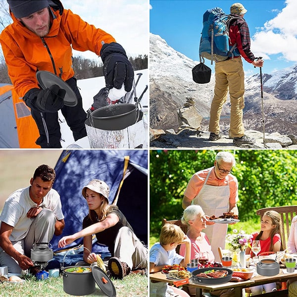 Gătiți oriunde cu acest set de vase de gătit versatil, compact și ușor, perfect pentru acasă, călătorii și aventuri în aer liber.