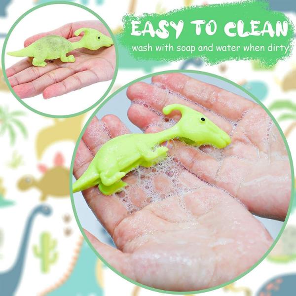 Un set amuzant de 5 dinozauri de diferite forme și culori strălucitoare, fiecare jucărie de dinozaur din cauciuc moale este super săltăreață și super lipicioasă! Implică-ți copilul în ore întregi de joacă.