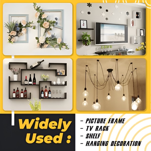 Perfect pentru diverse nevoi de decorare a locuinței, inclusiv pentru agățarea ramelor foto, lămpilor, perdelelor, ceasurilor, plantelor și multe altele pe pereți din gips-carton sau plăci de gips.
