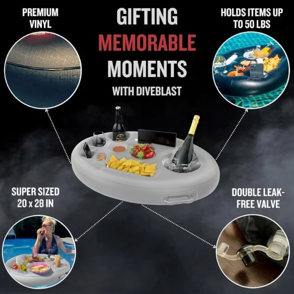 Faceți fiecare moment mai distractiv și memorabil cu această tavă plutitoare, companionul suprem la marginea piscinei pentru mâncare și băuturi.