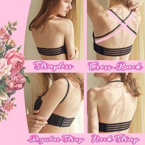 - Patru moduri de a-l purta: Acesta este sutienul perfect pentru stilul de îmbrăcăminte fără bretele, cu spatele gol, cu tăieturi adânci, cu decolteu, șnur, bretele încrucișate sau alte stiluri revelatoare. Oferă sentimente diferite pentru diferitele dumneavoastră ținute.